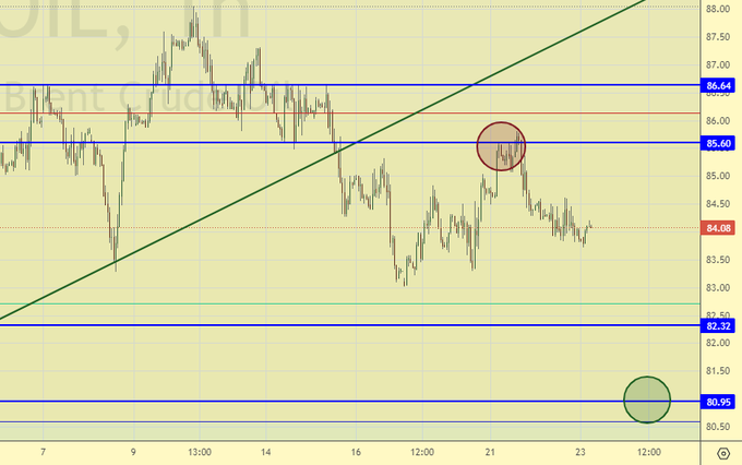 Продажа: нет. Кто в позиции от 85.50 перенесите стоп на 85.50. Цель: 81.00.