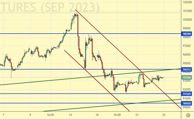 Продажа: сейчас. Стоп: 93700. Цель: 87000.