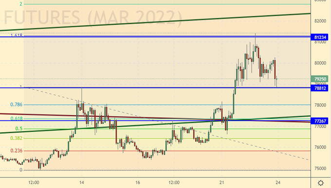 Покупка: нет. Кто в позиции от 75800 и 76000, держите стоп на 76300. Цель: 100000.