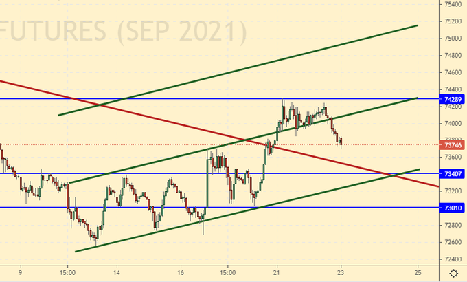 Покупка: нет. Кто в позиции от 73.05, перенесите стоп на 74.40. Цель: 77.30.