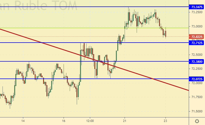 Нефть на максимумах. Рубль смотрится вполне себе ничего, несмотря на некоторую склонность к ослаблению. Скорее всего от 72.50 сегодня будут покупки долларов, но американец сейчас не настолько хорош чтобы ставить на него со 100% уверенностью.