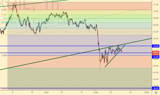 Продажа: сейчас. Стоп: 64.90. Цель: 58.70. Или при касании 66.20 и вплоть до 67.00. Стоп: 68.10. Цель: 58.70.