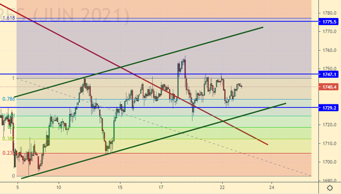 Для покупок нам нужно чтобы цены прошли выше 1755, тогда можно будет говорить о движении к 1850. Текущая ситуация равновесна. Движение вниз будем рассматривать после падения ниже 1725. Хороших вариантов для инвестиций сейчас нет, поэтому привлекательность золота будет оставаться на высоком уровне.
