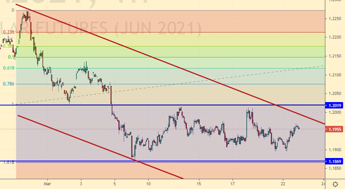 Структурно рынок готов продолжить падение. Если не будет неожиданного заброса выше 1.2000, то мы отправимся к 1.1630. Не исключено, что следом за США с их эмиссией 1.9 трлн. долларов, летом ЕС пойдет по такому же пути. В падающей экономике сбор налогов, как мы понимаем, падает. Деньги надо или занимать на внешнем рынке, или занимать у самих себя, то есть рисовать, причем столько, сколько надо, делая при этом вид, что всё, мол, в рамках приличия, мы тут, мол, приняли очередной акт (указ, закон, постановление).