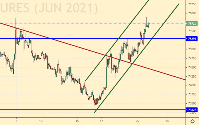 Покупка: сейчас. Стоп: 74300. Цель: 80000. Кто в позиции от 74600, держите стоп на 74300. Цель: 80000.