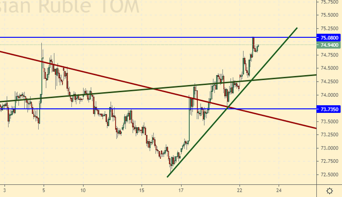Покупка: сейчас. Стоп: 73.60. Цель: 80.00. Кто в позиции от 73.80 и 74.50, держите стоп на 73.60. Цель: 80.00.