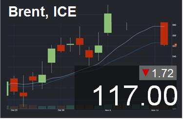 Согласно данным API запасы нефти в США за неделю упали на 4.28 млн. баррелей. Рынок отреагировал на выход статистики небольшим ростом. Нельзя исключать продолжения снижения цен в район 110.0. Данный район будет интересен для покупок.