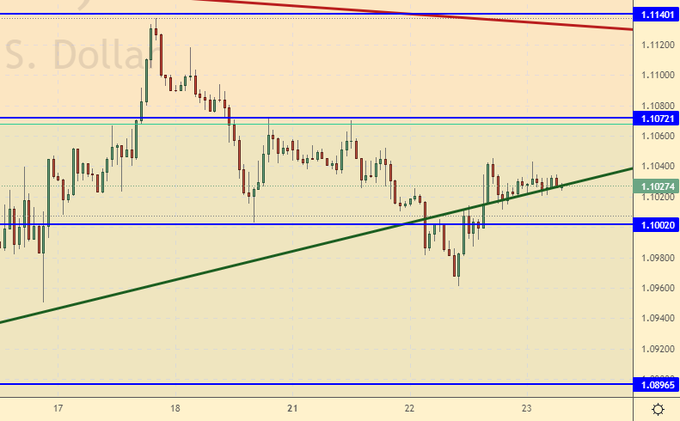 Продажа: нет. Кто в позиции от 1.1100 и 1.1030, перенесите стоп на 1.1080. Цель: 1.0600.