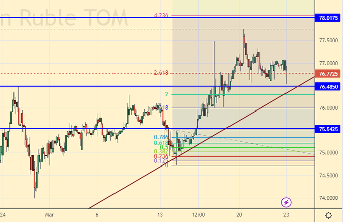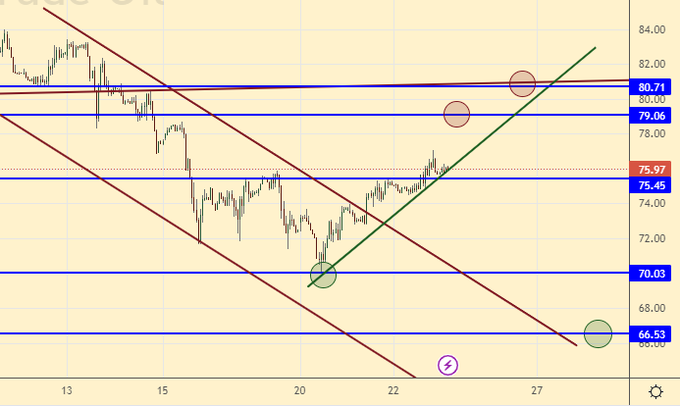 Покупка: при подходе к 75.50. Стоп: 74.50. Цель: 80.00. (88.00). Кто в позиции от 76.50, дрежите стоп на 76.40. Цель: 88.00.