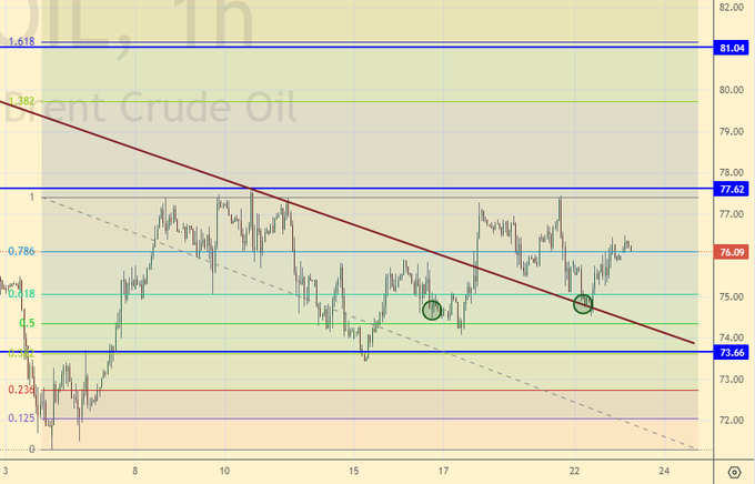 Покупка: нет. Кто в позиции от 75.00 и 76.70, держите стоп на 74.70. Цель: 90.00.