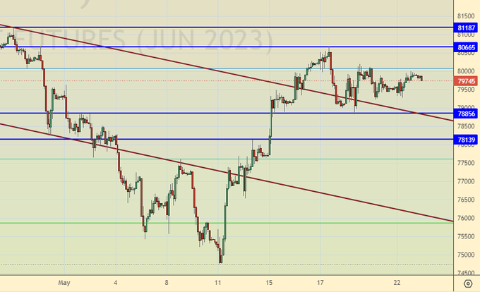 Продажа: нет. Кто в позиции от 80200, держите стоп на 80800. Цель: 73000.