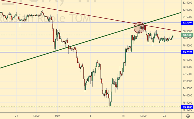Продажа: нет. Кто в позиции от 80.70, держите стоп на 81.30. Цель: 73.00.