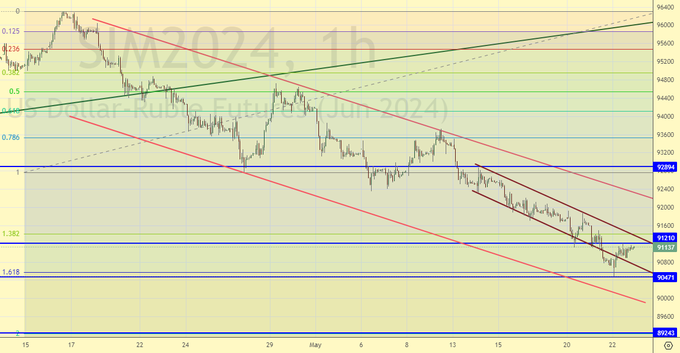 Читая наши прогнозы, вы могли взять ход по золоту вверх от 2340 до 2414 долларов за тройскую унцию. Также можно было взять ход вниз по фьючерсу на доллар/рубль от 94500 до 91100. Кроме того, можно было взять ход вниз по паре доллар/рубль на рынке спот от 93.04 до 90.24.
