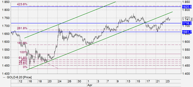 Золото: для наращивания длинной позиции хотелось бы увидеть откат к 1720. Если его не будет, то мы просто быстрее посетим 1820. Ставки центральных банков останутся на нуле, но комментарии будет интересно почитать. ФРС отчитается по ситуации 29-го апреля, а ЕЦБ 30-го числа. Фондовый рынок не выдержит поток негатива и снизится, что поддержит золото, так как куда сейчас девать деньги не совсем понятно.