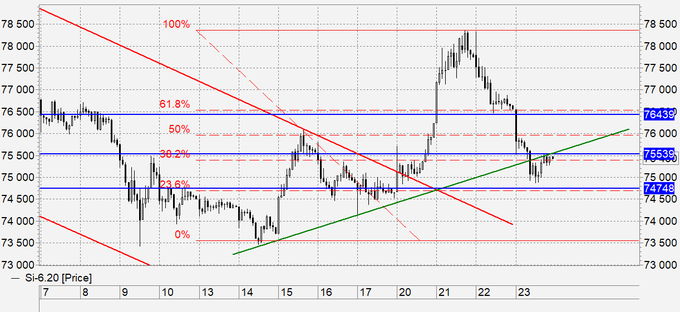 Покупка: после роста выше 76000. Стоп: 75200. Цель: 80200.