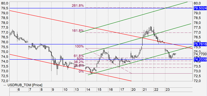 Покупка: после роста выше 75.80. Стоп: 74.60. Цель: 100.00.