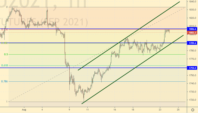 Доллар несколько сдал позиции в понедельник, что привело к росту золота. Мы остановились у последнего значимого уровня сопротивления в районе 1805. Если рынок продет выше, можно будет говорить о возврате на рынок быков. В сильную денежно-кредитную политику Пауэлла пока мало кто верит.