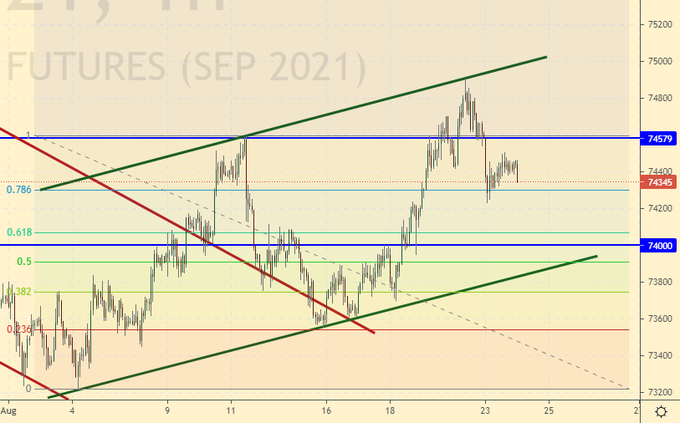 Покупка: нет. Кто в позиции от 74200, держите стоп на 73900. Цель: 75000.