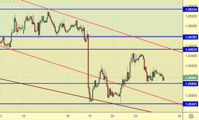 Продажа: нет. Кто в позиции от 1.0440, перенесите стоп на 1.0460. Цель: 1.0030.