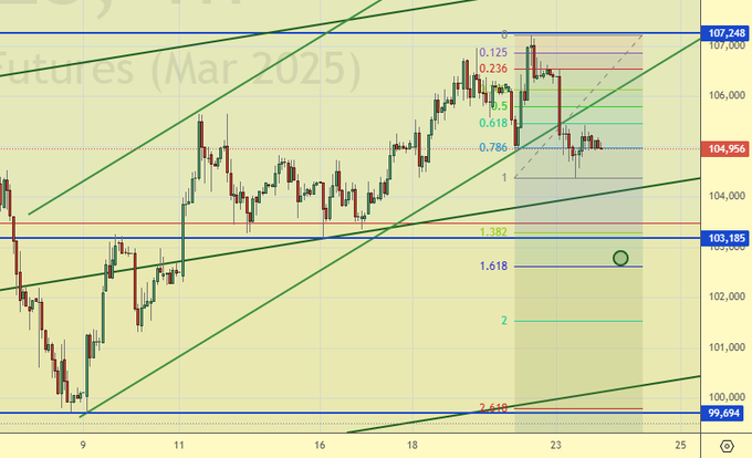Продажа: нет. Кто в позиции от 106300, перенесите стоп на 106400. Цель: 98000.