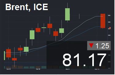 Цена в долларах за баррель. Для пересчета в доллары за тонну нефти марки Brent, необходимо цену умножить на 7,59.