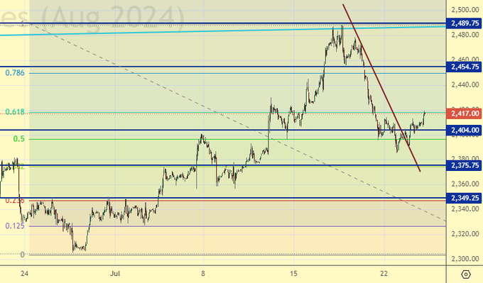 Покупка: нет. Кто в позиции от 2395, перенесите стоп на 2396. Цель: 2500.