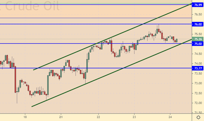 Покупка: нет. Кто в позиции от 73.05, перенесите стоп на 74.80. Цель: 77.30.