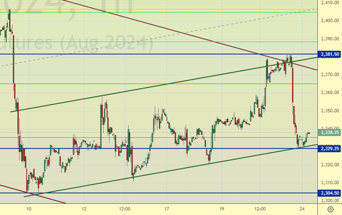 Продажа: нет. Кто в позиции от 2374, перенесите стоп на 2372. Цель: 2100.