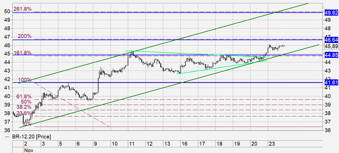 Что может помешать достижению данной отметки? Трамп начал процедуру передачи власти Байдену. Не отказываясь бороться в судах, он, тем не менее, не собирается раскачивать лодку. А Байден – это жесткий карантин на две, а то и три недели этой зимой, что заметно повлияет на спрос на нефть.