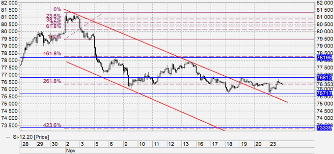 Покупка: после роста выше 76900. Стоп: 75900. Цель: 79000.