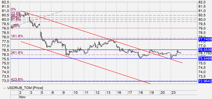 Трамп начал предварительную процедуру передачи власти Байдену. Байден для рубля фигура менее приятная нежели Трамп, так как возможны определенные трения в политической сфере. Не исключено, что сегодня мы увидим рост пары. Если котировки вырастут выше 76.50, это заставит нас пересматривать текущее положение вещей на рынке.