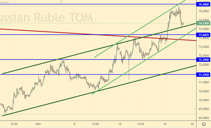 Покупка: сейчас и при подходе к 73.70. Стоп: 72.80. Цель: 80.00. Кто в позиции от 73.10, держите стоп на 72.80. Цель: 80.00.