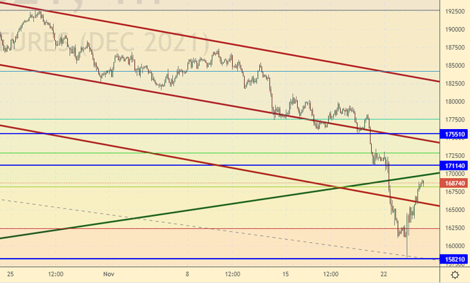 Продажа: сейчас. Стоп: 171300. Цель: 150000. Кто в позиции от 185500, держите стоп на 171300. Цель: 150000.