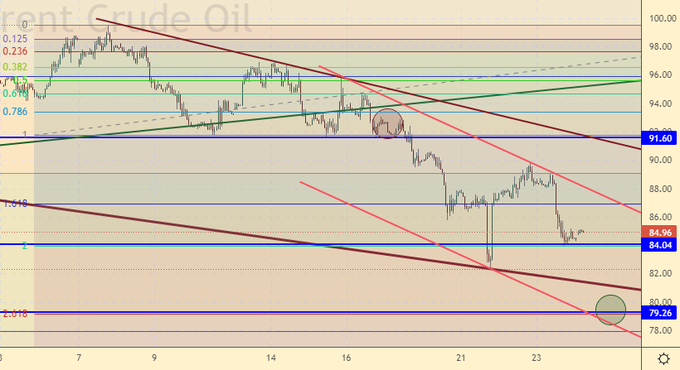 Продажа: нет. Кто в позиции от 95.00 и 92.30, перенесите стоп на 91.30. Цель: 78.60.