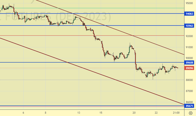 Продажа: при подходе к 96.40. Стоп: 97.40. Цель: 88.00. В случае касания 87.00. Стоп: 88.30. Цель: 80.00.