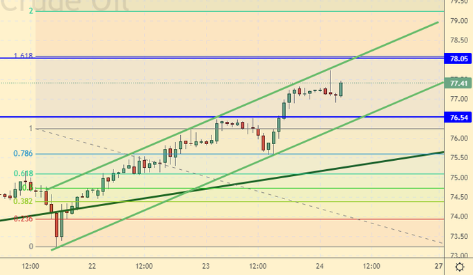 Нефтяные котировки продолжают своё движение к 80.00. Сообщение со стороны американской администрации о том, что Иран не подал им никаких сигналов по поводу возобновления ядерной сделки сдвигает в будущее возможные сроки выхода на рынок от 1 до 1.5 млн. тонн иранской нефти. Тегеран можно понять, цены на нефть на хороших уровнях. Доходы так или иначе поступают в казну, снижая эффективность западных санкций, можно и дальше вести торг по своей ядерной программе.