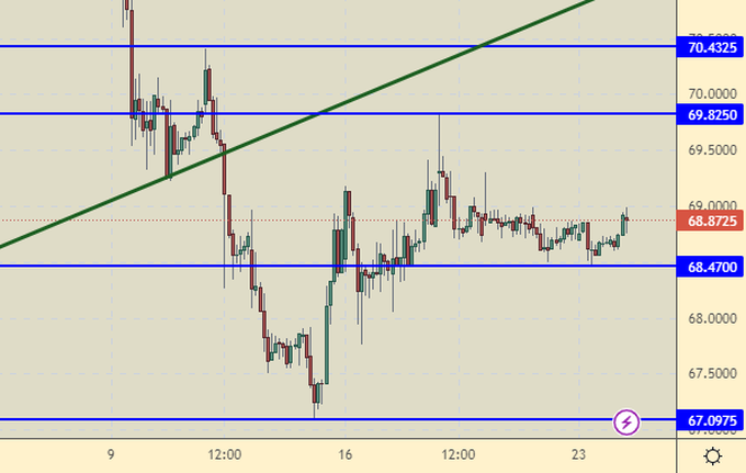 Продажа: нет. Кто в позиции от 69.50 держите стоп на 69.60. Цель: 65.60.