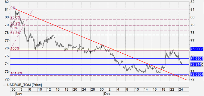 Сегодня движений по паре не ждем, так как в странах Запада Рождество. Завершение раздела имущества между Британией и ЕС может сыграть положительную роль для Евро в ближайшее время. Доллар же получит некоторую поддержку после завершения процедуры передачи власти в стране.