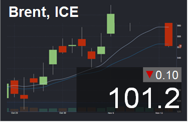 Цена в долларах за баррель. Для пересчета в доллары за тонну нефти марки Brent, необходимо цену умножить на 7,59.