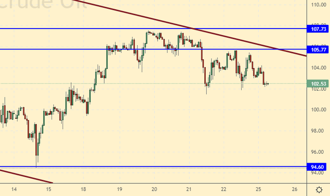 Продажа: нет. Кто в позиции от 108.00 и 106.00, перенесите стоп на 106.60. Цель: 90.00.
