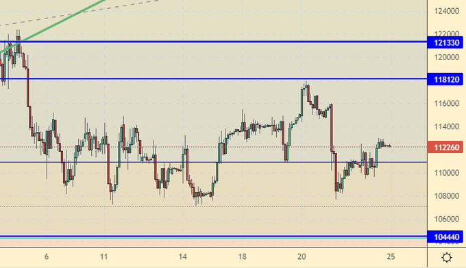 Продажа: нет. Кто в позиции от 117000, перенесите стоп на 116300. Цель: 94000. При подъеме к 120000. Стоп: 123000. Цель: 94000.
