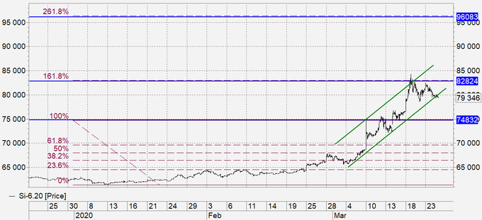 Индекс РТС: продолжаем хотеть продвинуться к 106000. Откат к 90000 можно использовать для покупок. Рост выше 106000 пока считаем избыточно оптимистичным сценарием, но до данной отметки рынок дойдет за сегодня и завтра. Если России удастся задавить эпидемию в зародыше, это позволит пройти текущий кризис с небольшими потерями, что улучшит перспективы восстановления. Не выбрасывайте акции Аэрофлота, всё будет хорошо.