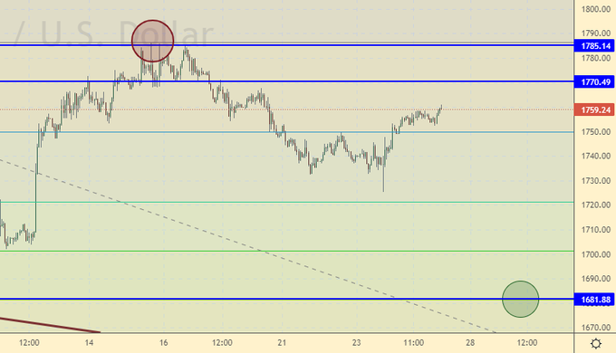 Продажа: нет. Кто в позиции от 1785, держите стоп на 1772. Цель: 1685.