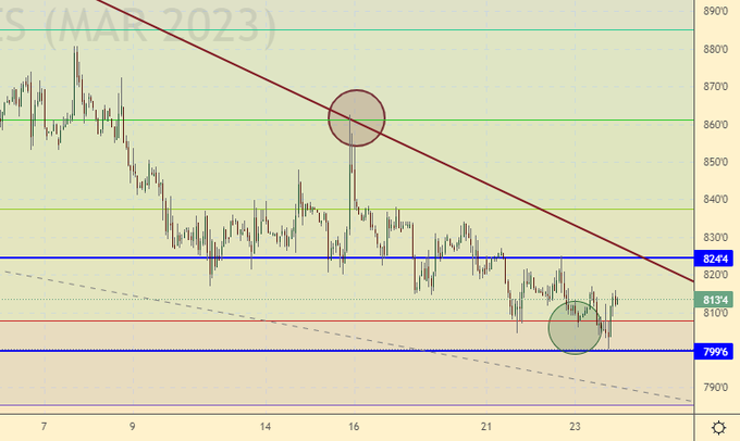Продажа: нет. Кто в позиции от 850.0, перенесите стоп на 837.0. Цель: 700.0.