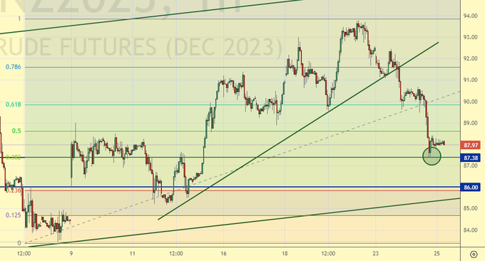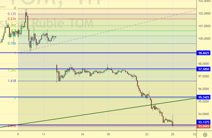 Продажа: при подходе к 95.40. Стоп: 95.80. Цель: 87.00.
