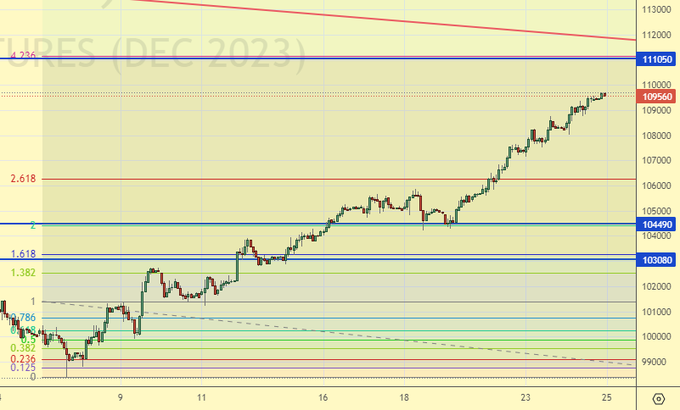 В районе 11000, скорее всего, рынок приостановит рост. После чего должна последовать коррекция к 106000, после чего в случае позитивных настроений к Новому Году восхождение продолжится до 115000.