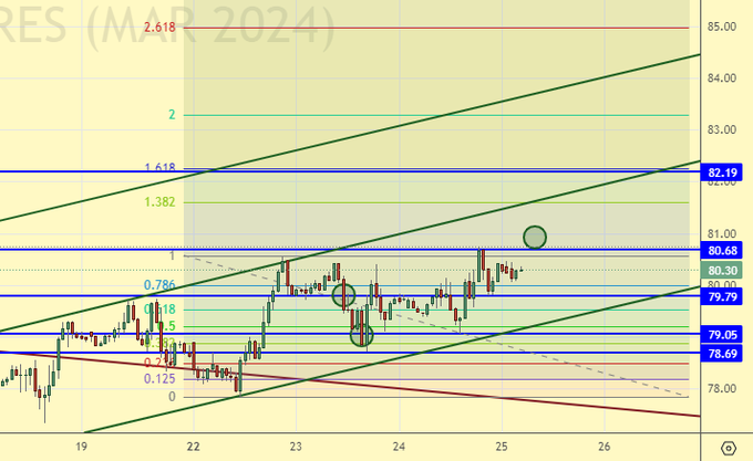 Покупка: нет. Кто в позиции от 79.00 и 80.00, перенесите стоп на 78.90. Цель: 100.00. Добавить после роста выше 81.00.