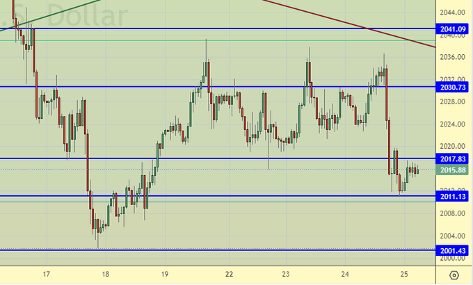 Три подхода к 2040 ничего не дали покупателям. Шансы на падение к 1910 выросли. Несмотря на то, что вчера позиции доллара пошатнулись мы не видим попыток покупать золото, что говорит о локальных медвежьих ожиданиях.