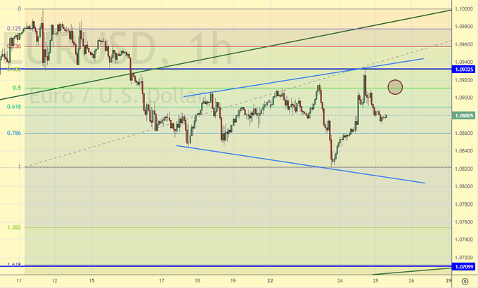 Продажа: при подходе к 1.0920. Стоп: 1.0963. Цель: 1.0720.