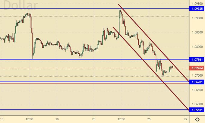 Продажа: нет. Кто в позиции от 1.0750, перенесите стоп на 1.0810. Цель: 1.0600 (изменена).
